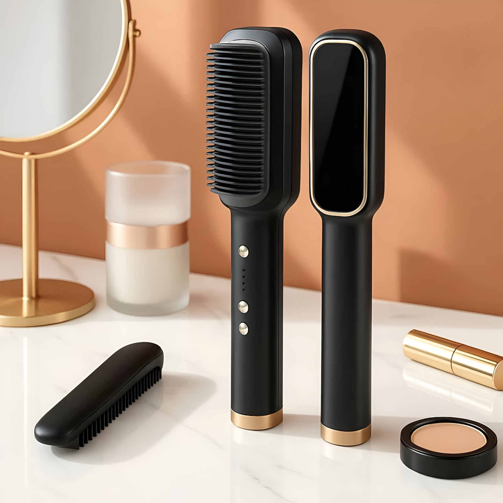 Consigue un cabello liso, brillante y sin frizz desde la primera pasada. Este sistema 2 en 1 combina el cepillado suave con calor uniforme para un alisado profesional sin dañar tu cabello, todo desde casa y en pocos minutos al día.