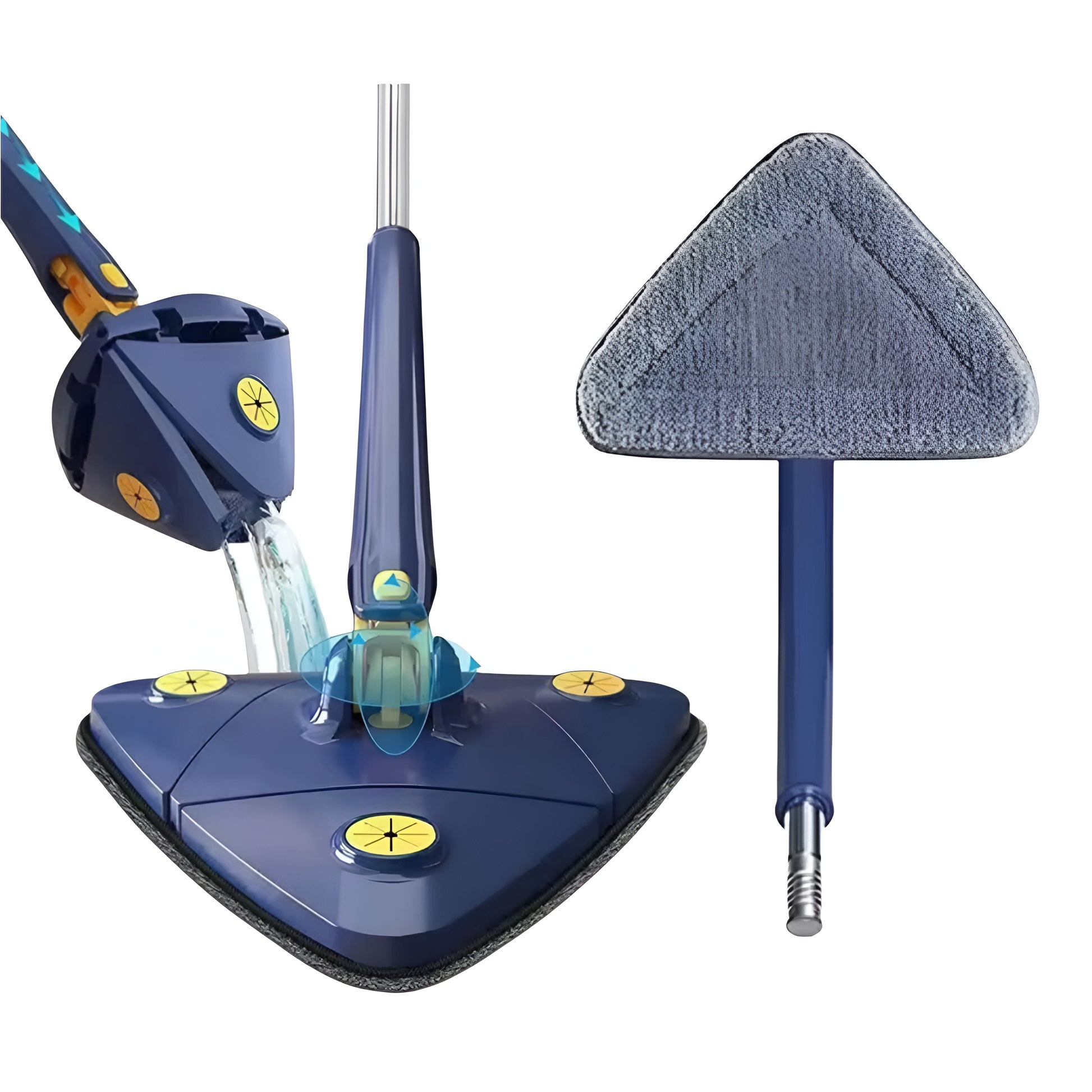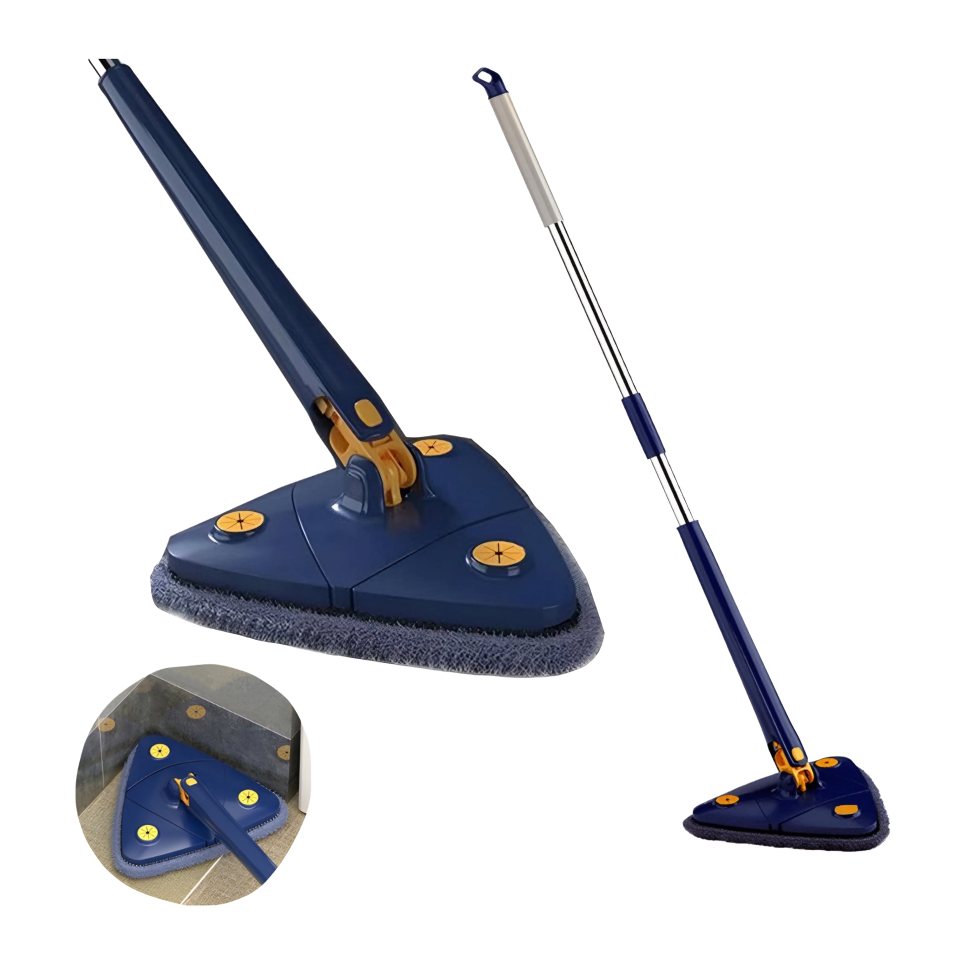 Resultados Visibles: Su cabezal triangular elimina el polvo y la suciedad en esquinas, techos y espacios estrechos donde las mopas comunes no llegan. Máxima Versatilidad: Perfecta para cualquier superficie, desde cristales y azulejos hasta suelos de madera. El mango extensible hasta 130 cm permite adaptarse a diferentes alturas y necesidades de limpieza con total facilidad. Diseño Profesional: Acabado elegante en color azul marino, con un sistema de giro 360 y mecanismo de auto-escurrido que protege tus manos y optimiza el tiempo de secado.